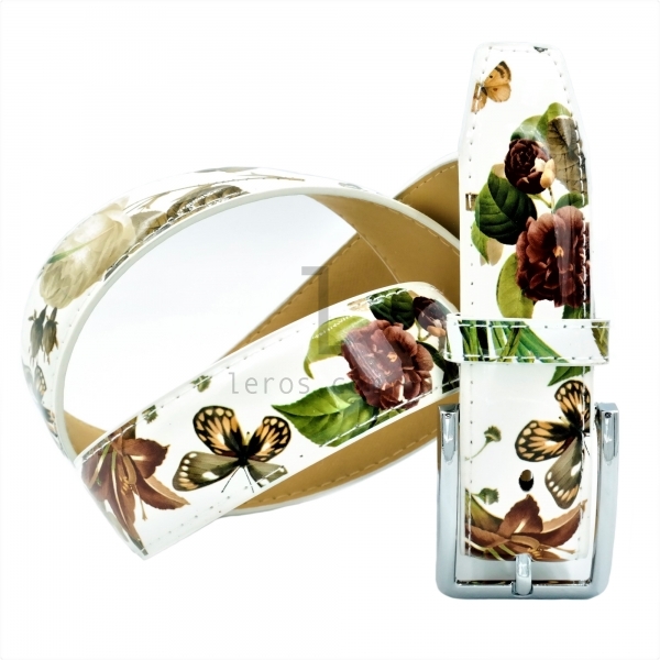 Жіночий ремінь квіти лак
